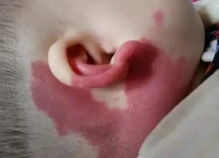 还有部分婴儿的红色胎记可能是葡萄酒色斑,与鲜红斑痣类似,但颜色更深,呈紫红色,且面积可能较大,常出现在面部,可能会随着宝宝年龄的增长而逐渐增厚、出现结节。